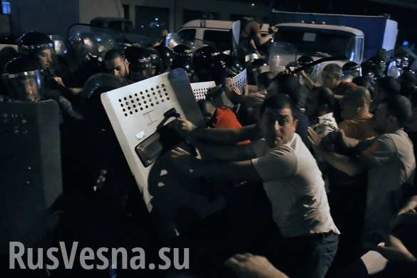 Участники шествия в поддержку вооруженной группы, захватившей здание полка патрульно-постовой службы в столице Армении, пройдя по малому центру, дошли проспекта Маршала Баграмяна, передает корреспондент РИА Новости. Митингующие, которых около полутора-двух тысяч человек, остановились в начале...