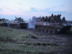 Военнослужащие украинской армии, вошедшие в Славянск, подняли российский флаг, дав тем самым понять, что они перешли на сторону сторонников федерализации. "Это был не захват сил самообороны. Украинские военные прибыли сюда, что характерно, под российским флагом....