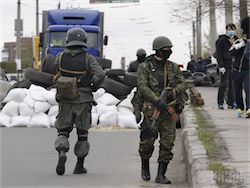 Сотни местных жителей с флагами России и Донецкой народной республики направляются к местному аэродрому, который ранее заняли военнослужащие украинской армии. Несколько сотен человек находятся в нескольких километрах от аэродрома, некоторые из них вооружены, сообщает агентство РИА Новости....