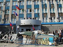 Самолет прибыл в Донецк 7 апреля после того, как и.о. президента Украины Александр Турчинов объявил о начале антитеррористической операции, направленной против протестующих на востоке Украины. На кадрах видно, как бойцы, у которых из опознавательных знаков только краповые береты, открывают ящики с...