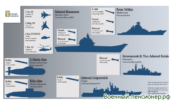 Среди надводных кораблей российского ВМФ, развернутых в восточной части Средиземного моря, нет ни одного, который мог бы применить крылатые ракеты морского базирования 3М-14 «Калибр-НК». Однако в огневых ударах по объектам террористов могут применяться ракеты «Калибр-ПЛ», запущенные с подводных лодок. Ранее британская газета The Times со ссылкой на источники в военной разведке утверждала, что в Средиземном море развернуты три атомных подводных лодки, на вооружении которых могут быть ракеты подобного типа. Кроме того, изделия 3М-14 «Калибр-НК» могут быть запущены из акватории Каспийского моря, как это уже происходило ранее. Возможно также боевое применение крылатых ракет воздушного базирования типа Х-101, запущенных с бортов стратегических ракетоносцев Ту-95 и Ту-160. сейчас завершается работа по определению районов сосредоточения вооруженных формирований террористических группировок, выявлению маршрутов их передвижения, расположению укрепленных позиций и районов, лагерей подготовки, баз хранения и снабжения, объяснил источник «Газеты.Ru». Для этого в Сирии была значительно увеличена группировка российских разведывательных средств, в том числе беспилотных летательных аппаратов, средств радиотехнической разведки. К сбору разведданных активно привлекается орбитальная космическая группировка.