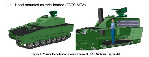 До сих пор неясен (а, возможно, еще и точно не определен) конструктив размещения минометной системы Mjö-lner на шасси CV90. Графические рендеры BAE Systems изображают установку в неподвижной закрытой броневой рубке. Однако, по шведским публикациям и изображениям, минометы будут размещены во вращающейся (возможно, не полного кругового вращения) броневой башне, причем вращение башни будет осуществляться только ручным (!) приводом. Боеукладка мин находится в задней части рубки/башни, подача ручная. Расчет при стрельбе находится в боевом отделении в стоячем положении в полный рост.