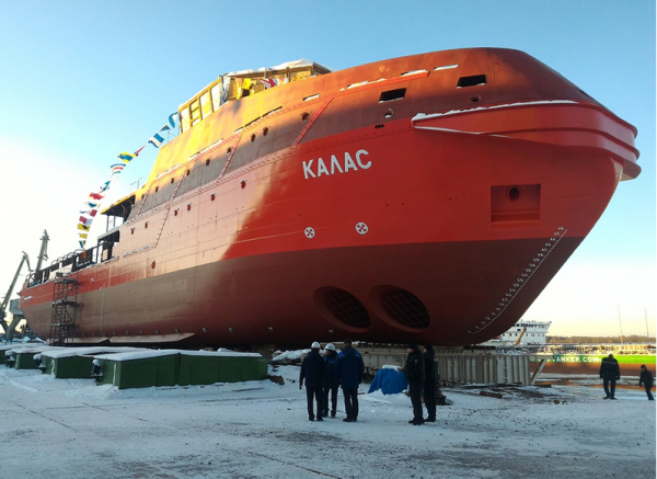 Спуск на воду на ООО "Невский судостроительно-судоремонтный завод" многофункционального буксира-спасателя мощностью 2,5-3 МВт "Калас" проекта MPSV12, строительство которого осуществляется для ФКУ "Дирекция Госзаказчика". Шлиссельбург, 29.12.2016 Источник: ООО "Невский судостроительно-судоремонтный...