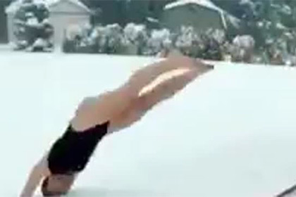Члены команды по плаванию Технологического института Джорджии (США) провели тренировку в снегу. Видеозапись появилась в аккаунте «Русской службы Би-би-си» в Twitter. Пловцы устроили «заплыв» в снегу перед отелем в городе Крисченсберг, штат Вирджиния....